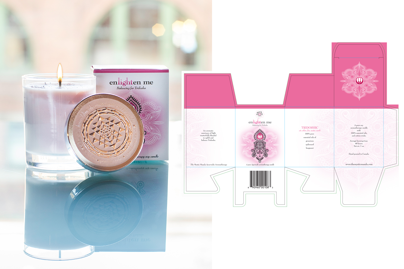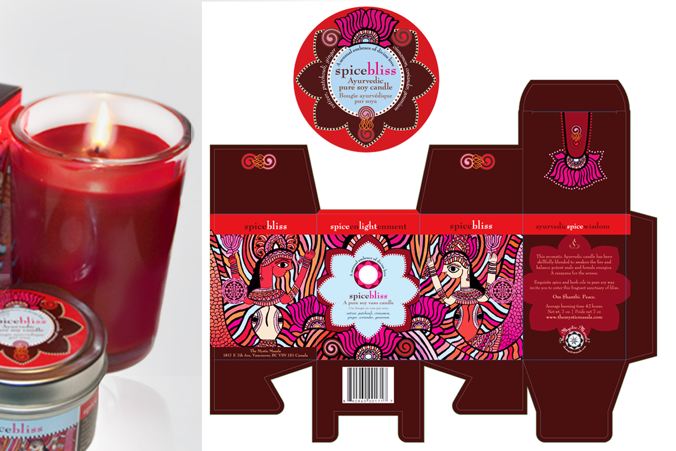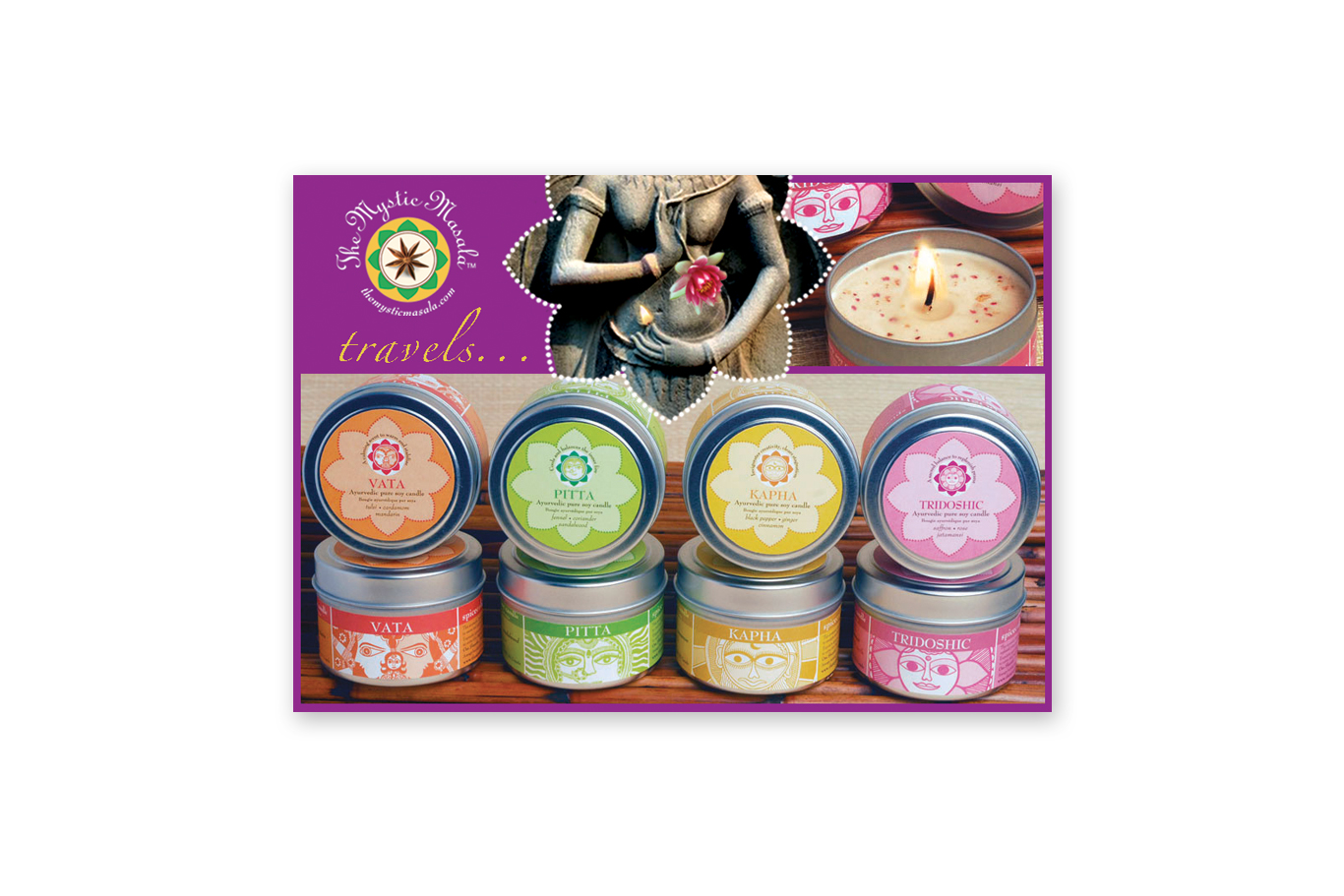 The Mystic Masala candle line design challenge was to evoke sacred beauty while communicating the purity of the product.