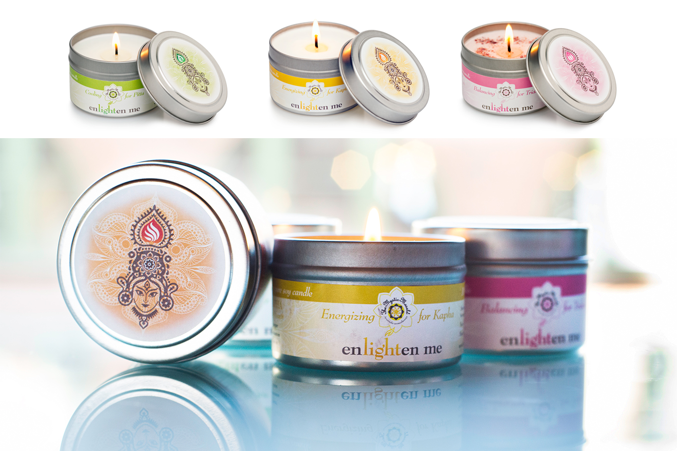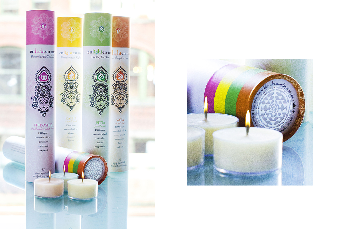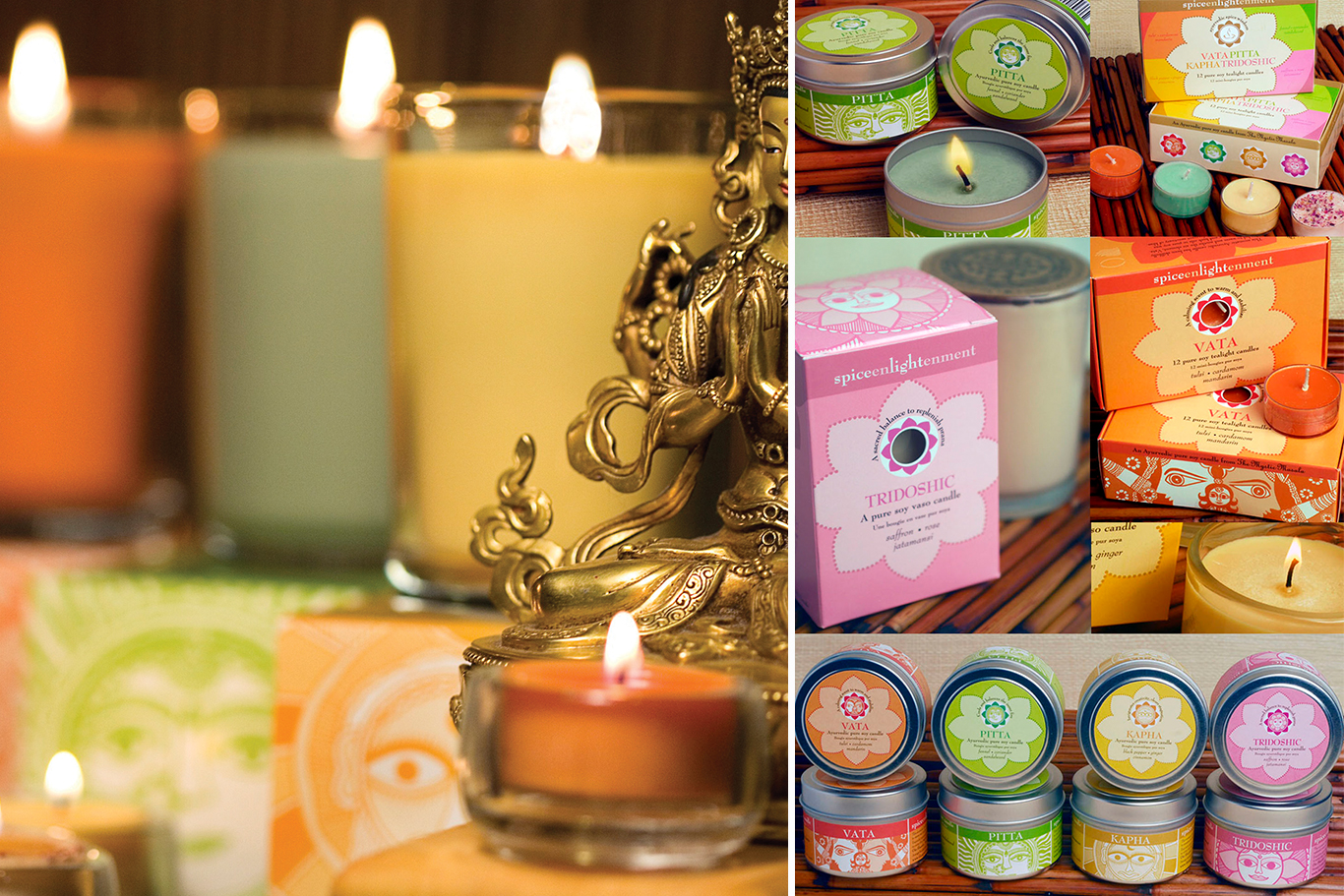 The Mystic Masala candle line design challenge was to evoke sacred beauty while communicating the purity of the product.